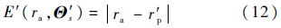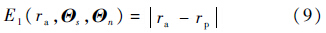 因此,xp最终可以转化为xa,参数向量Θs=[f da dg dw ro]T,以及折射率向量Θn=[na ng nw]T的函数.在第1.2节中,对于给定的图像点xa,与单视点相机成像相比,二者的差异(即折射变形大小)为