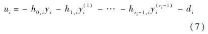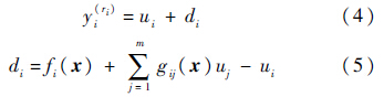 通过把系统其他输入和状态的影响归结为系统扰动项di,实现输入与输出的一一对应,使多输入多输出系统变为了多个带有扰动项的单输入单输出系统.该扰动项既包含了通道耦合项,也包含了系统不确定性项.