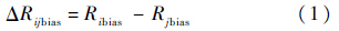 机器鱼样机的第i根鳍条摆动中心线的位置如图 7所示.机器鱼鳍条摆动的两个极限位置的对称中心线为鳍条摆动中心线.则Ribias是第i个鳍条单元的摆动中心线与y轴之间的夹角(规定逆时针为正),称为振幅偏置,同时,定义