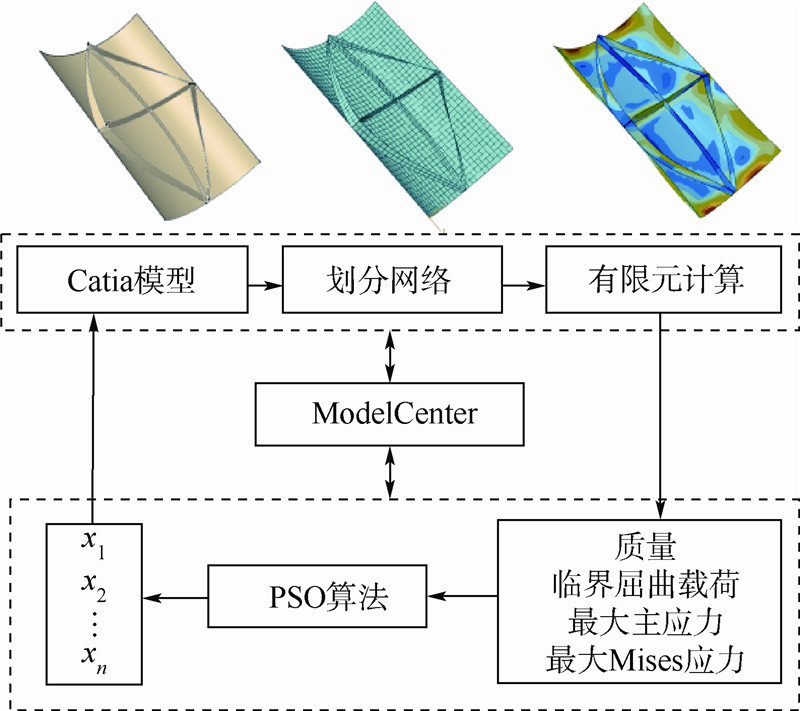 优化平台基于PHX ModelCenter 9.0设计优化环境、Catia模型设计工具和Abaqus有限元分析系统.该平台能对一般的矩形板和筒状板进行稳定性或质量的优化设计.
