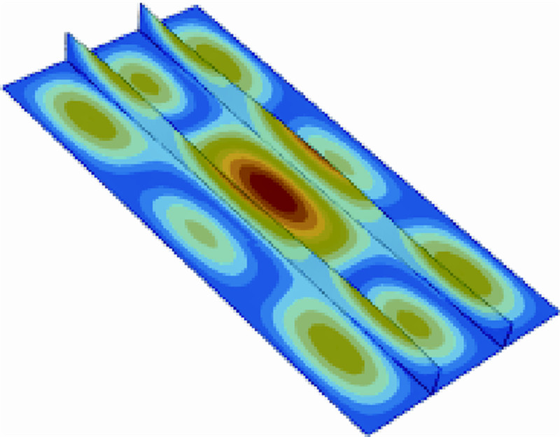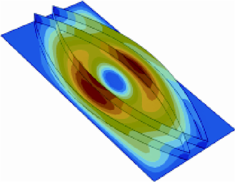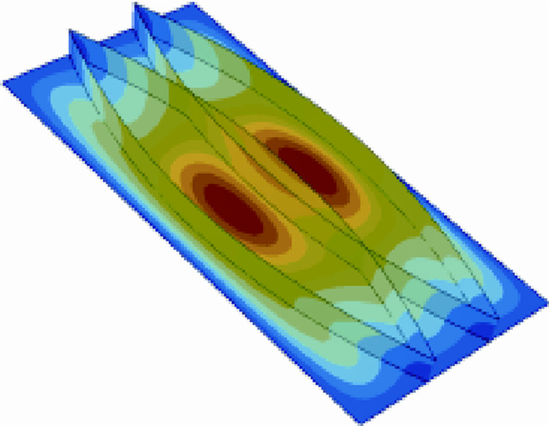 图 13 单轴载荷下双曲筋的一阶模态Fig. 13 First step mode of two curvilinear stiffeners
