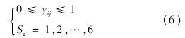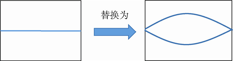 实际的筋条曲线的两端可以在板的4条边自由移动.根据端点位于不同的板边,数学上可以通过定义坐标映射函数map(Si,yi0,yim),产生6种基本布局形式(约定曲线两端点不位于同一板边),如图 3所示.这里Si是布局形式的离散变量,取1~6.其中,1表示筋条在板宽对边连接,2表示板长对边连接,3~6分别表示板相邻边的4种连接方式.