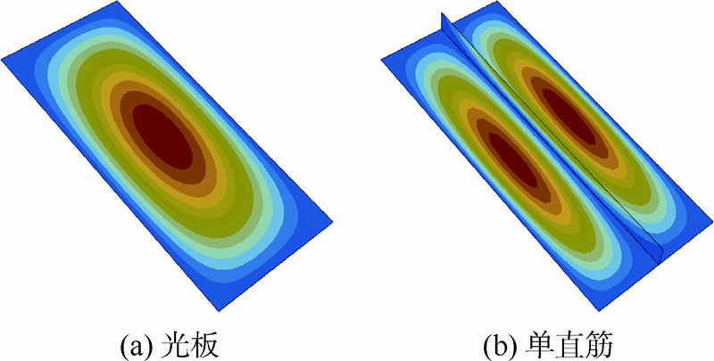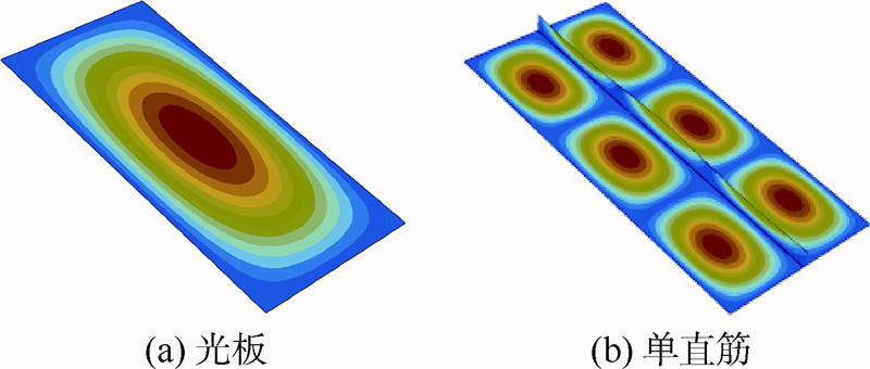 图 6 单轴载荷下光板和单直筋的一阶模态Fig. 6 First step mode of bare board and