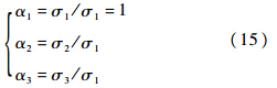 式(19)反映了三向应力状态下主应力σ1与σ及应力状态参数σ1,σ2和σ3之间的关系.