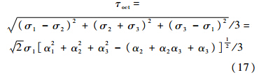 当α2=α3=0时,单向应力状态下八面体剪应力为