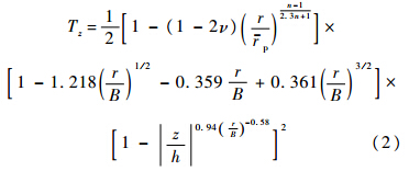 从图 5中可以看出,理论计算值曲线的绝大部分均在试验点的范围内,小于经验公式计算值,且偏于安全,作为工程应用中的参考值是很有价值的.计算曲线出现凸凹反复变化的情况可能是由以下两个原因造成的:①Tz的表达式有待于完善;②由于Tz是KC1的函数,而KC1又是k及Tz的函数,因此迭代求解过程的算法还有待改进.