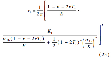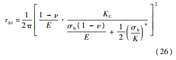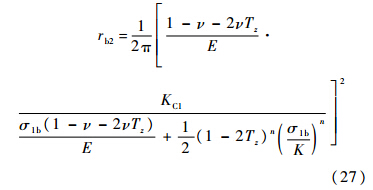 当结构于平面应力状态下发生断裂时,式(25)中Tz=0,KI=KC,rb=rb1,所以有
