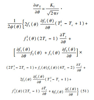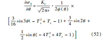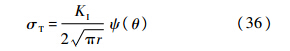 令式(34)和式(35)相等,可得裂纹尖端应力场与单向拉伸应力之间的关系表达式: