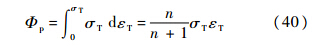 在裂纹尖端取单位厚度板,图 4为裂纹尖端塑性区示意图.σTm为在塑性区中σT取极大值的线,假设σTm线上有任意一点P及其前方一点P′,当裂纹扩展长度为da时,σTm线将移到σ′Tm位置.假设P′在σ′Tm线上,这时P点将进入卸载区,其卸载按弹性规律进行.σ′Tm线右方各点与裂纹未扩展时σTm线右方各点应力应变场的分布相同.因此,在裂纹扩展长度延长至da的过程中,仅用σTm线与σ′Tm线之间的材料参数计算塑性功率即可,弹性卸载可略去不计.
