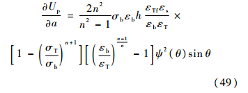 所以,图 4中裂纹扩展长度为da时,σTm线与σ′Tm线之间材料的塑性应变能为