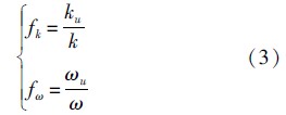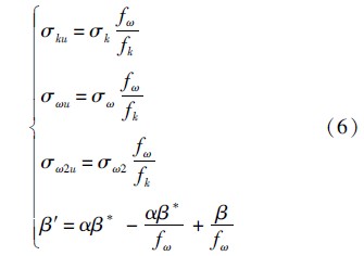 PANS方法以RANS方程为模板,本文采用的PANS方法基于两方程SST(Shear Stress Transport)模式,原始SST模式方程[17]为
