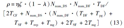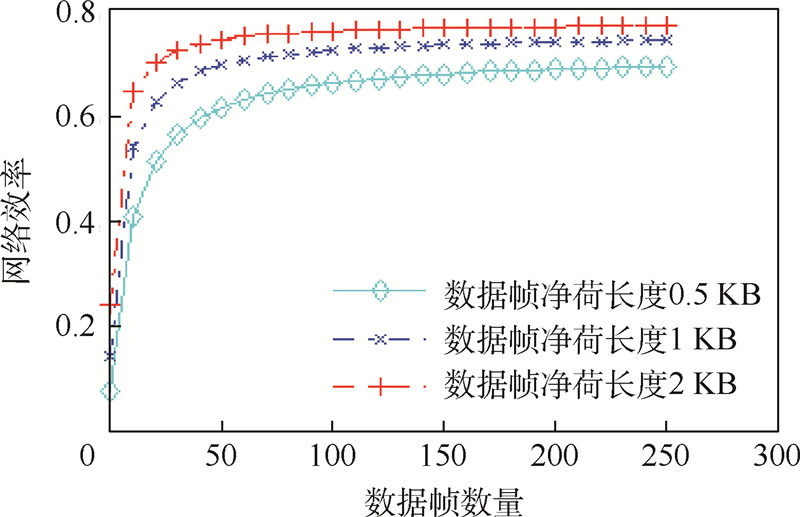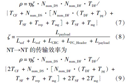 数据帧净荷长度由序列中帧数和每帧中的有效数据组成,大小为Nnum_DS·Nnum_DF·TDF.可以得出,NC→NT的传输效率为