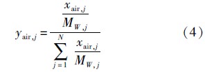 式(1)~式(6)确定了舱内空气的密度ρair、内能Uair和各种组分的摩尔分数yair,j,则舱内空气状态可以确定,舱内气压Pair、空气温度Tair和空气焓值hair可以通过理想气体相关的方程求出,各种组分的分压为
