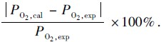 本文计算了图 3(a)中氧分压试验测试结果PO2,exp与仿真计算结果