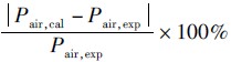 本文计算了图 3(b)中总压试验测试结果Pair,exp与仿真计算结果Pair,cal之间的偏差,即