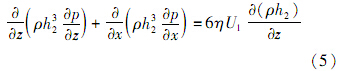 片间间隙和片端间隙处流体符合雷诺方程的基本假设[14],其中片间间隙气膜的雷诺方程为