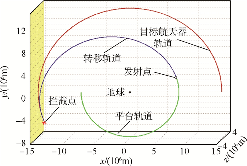 | 图 1 空间拦截问题示意图 Fig. 1 Schematic diagram of space interception |
