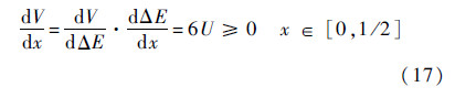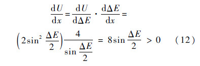 同理,在0 < x<1区间上,由式(12)可知U(ΔE(x))非负且是单调增函数.