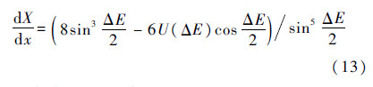 由式(10)可知,如果X在0<x<1区间上连续单调非负,则F(x)、G(Y)分别在它们的定义域上单调增.因此如果F(x)、G(Y)函数曲线分别只穿越x轴、y轴一次,则方程F(x)=0和G(Y)=0有唯一解.下面证明X在0<x <1区间上连续单调非负.令U(ΔE)=ΔE-sin ΔE,在ΔE∈(0,2π)区间上,由