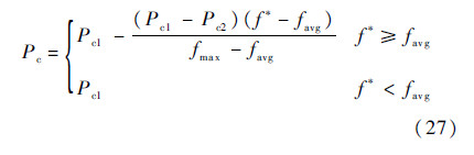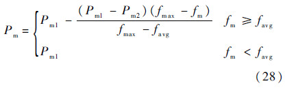 式中:Pc1取为0.8;Pc2取为0.5;fmax为种群最大适应度值;favg为每代种群的平均适应度值;f*为交叉的两个个体中较大的适应度值;Pm1取为0.15;Pm2取为0.1;fm为变异个体的适应度值.