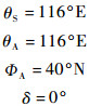 式中:RE为地球平均半径;ФA为地面天线阵列中心纬度.