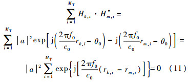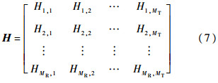 由电磁波在自由空间中的传播原理可知,第mR=m行、第mT=(l-1)·N+n列的矩阵元素Hm,l_n的等效基带表示为[15]