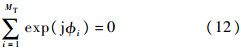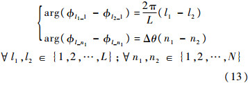 考虑此处的系统,不妨给所有的exp(jφi)分组:令同一颗卫星上的所有天线为一组,记第l颗卫星上的第n根天线对应exp(jφi)=exp(jφl_n),其中i=(l-1)N+n.于是一共分出了L组.容易验证,只要令同组的相邻两个exp(jφl_n)之间方位角之差Δθ保持相等,并且令