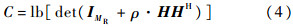 式中:ρ为信道的线性信噪比,定义对数信噪比为SNR=10 lg ρ=EIRP+(G-T)-κ-β(单位:dB),其中EIRP、(G-T)、κ和β分别为有效全向辐射功率、品质因数、玻耳兹曼常数和下行链路带宽的对数值[14];(·)H表示矩阵或矢量的共轭转置.