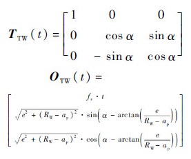 有了P点在刀具坐标系中的表达式,再进一步对其进行旋转变换(乘以矩阵TTW(t))和平移变换(加上向量OTW(t))便可以得到P点在工件坐标系中的坐标表达式PW,j(t).