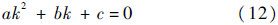 式(11)是关于未知数k的一元二次方程,可以整理成式(12)的形式: