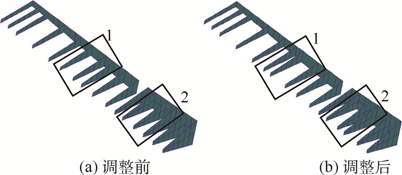 在给定2种不同的几何参数与有限元尺寸参数前提下,所生成的三角翼结构初始有限元网格如图 9所示,对应的骨架有限元网格如图 10所示.