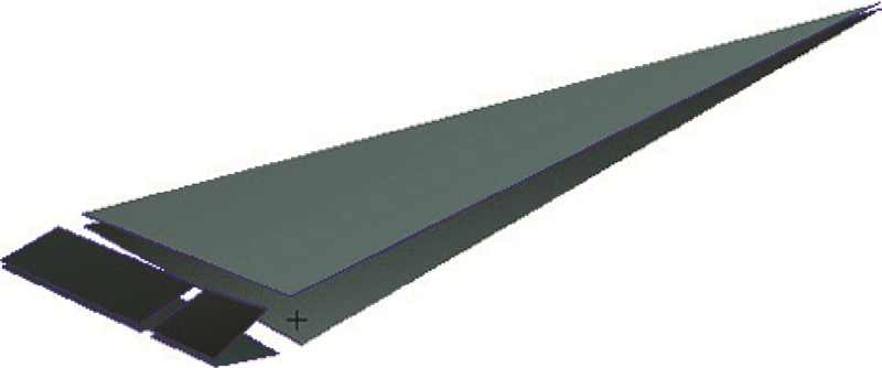 本文以图 3所示气动外形为输入,考虑方法的通用性,将其划分为如图 1所示的6个部分,各部分有限元网格独立建立,最后组成一个完整网格.通过选取表 1所列之几何参数,实现三角翼结构参数化网格划分与调整.