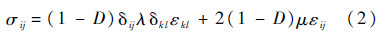 基于应变等价原理,含损伤的各向同性材料的线弹性本构关系为