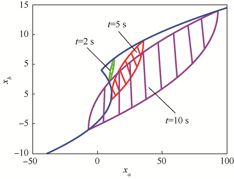 该二阶系统可达区域Ω(t)可以描述为式(13)在相平面xa-xb所包围区域: