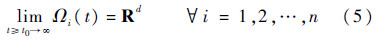 那么根据Helly定理以及Ωi(t)是凸集的性质,可以知道对于d维状态空间内所有Ωi(t)存在公共交集等价于任意d+1个状态可达区域存在交集.则必然有