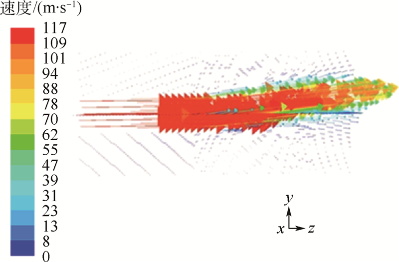 | 图 13 MHD作用下速度矢量分布 Fig. 13 Velocity vector distribution with MHD |