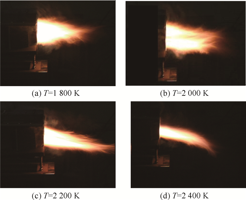 2) 点燃4只高温火焰枪之后,启动空气压气机,向燃烧室输入空气,然后启动空气压气机,调节压气机流量,使温度稳定在1 400~1 500 K范围内.